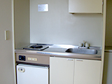 エアコン、電子レンジ、冷蔵庫、電子レンジ、WIFI、机、下駄箱、布団、棚、カーテン、調理器具、食器など必要なものは全て揃っています。 安心して生活できるように、使用方法など職員が丁寧に説明します。住みやすい環境をつくるため、毎週土曜日は、職員が寮の点検に行きます。